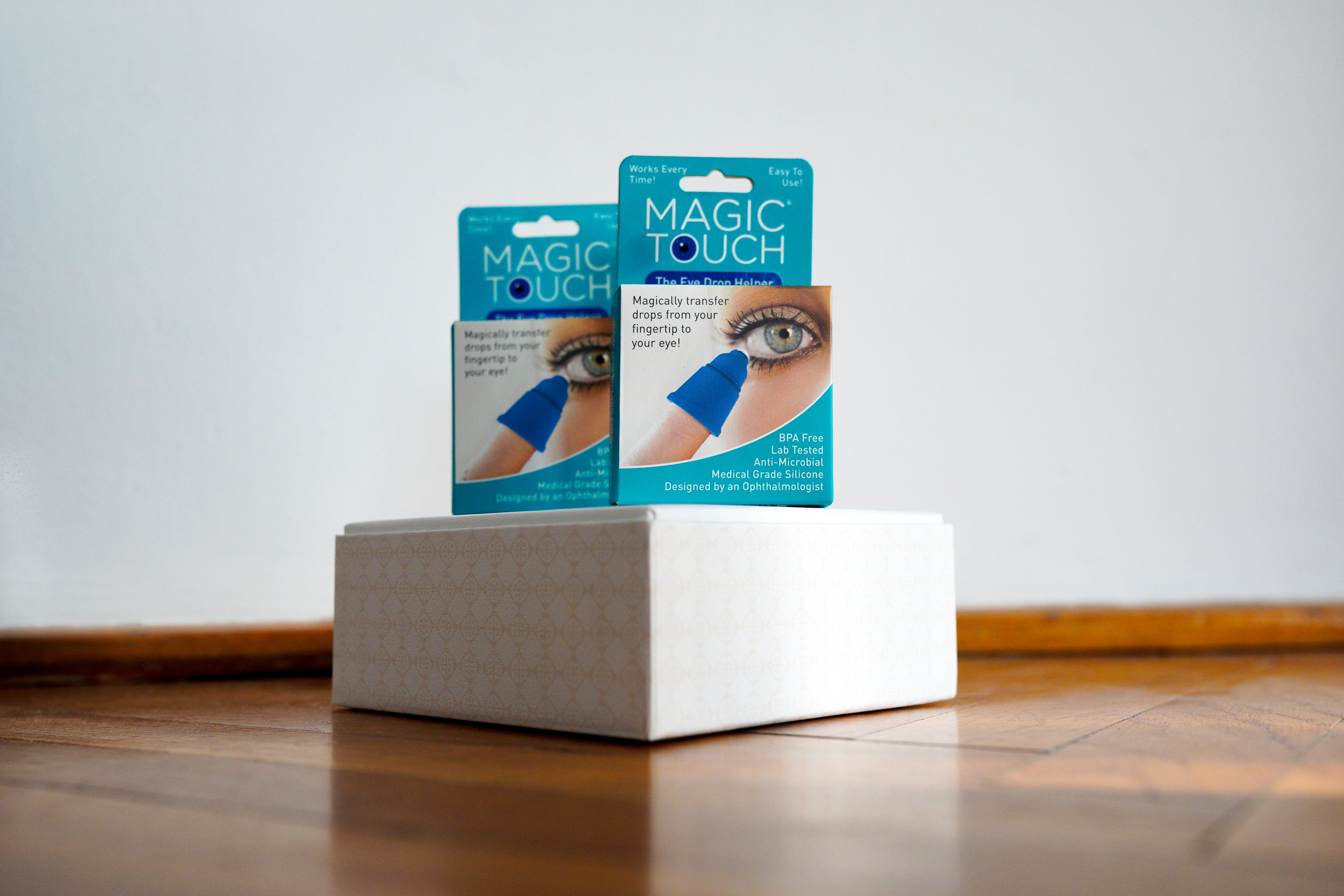 Magic Touch Eye is a simple, reusable tool that helps guide eye drops safely and comfortably into the eye - no squeezing, no hovering, and no wasted drops. It’s especially helpful for people with dry eyes, sensitive eyes, shaky hands, children, or pets who dislike eye drops.